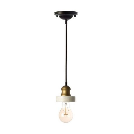 Informations Techniques : Dimensions : L. 10 x l. 10 x H. 10 cm Longueur du câble : L. 150 cm Matières : Marbre & Fer Spécificités : Design & Tendance Lampe Suspension Design Type de Culot : E27 Puissance : 1 x 40W Ampoule Non Incluse Poids : 700 g Couleur : Blanc & Or