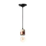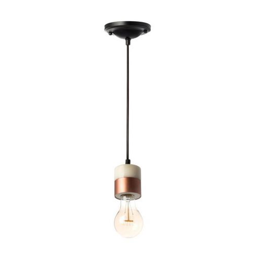 Informations Techniques : Dimensions : L. 7 x l. 7 x H. 10,5 cm Longueur du câble : L. 150 cm Matières : Marbre & Fer Spécificités : Design & Tendance Lampe Suspension Design Type de Culot : E27 Puissance : 1 x 40W Ampoule Non Incluse Poids : 860 g Couleur : Cuivre & Blanc