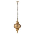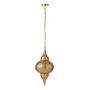 Informations Techniques : Dimensions : D. 32 x H. 65 cm Câble : L. 150 cm Matière : Métal Spécificités : Pratique & Utile Lampe suspension déco Style oriental Design ajouré Ampoule non incluse Puissance : 40W Poids : 1,3 kg Couleur : Or