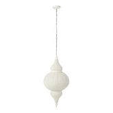 Informations Techniques : Dimensions : D. 40 x H. 86 cm Câble : L. 150 cm Matière : Métal Spécificités : Pratique & Utile Lampe suspension déco Style oriental Design ajouré Ampoule non incluse Puissance : 40W Poids : 1,85 kg Couleur : Blanc