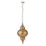 Informations Techniques : Dimensions : D. 40 x H. 86 cm Câble : L. 150 cm Matière : Métal Spécificités : Pratique & Utile Lampe suspension déco Style oriental Design ajouré Ampoule non incluse Puissance : 40W Poids : 1,95 kg Couleur : Or