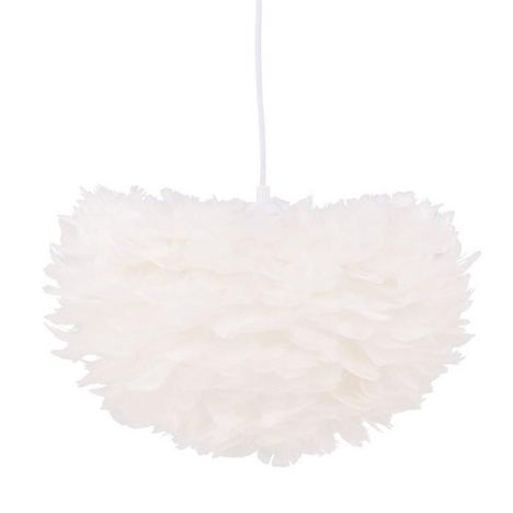 Informations Techniques : Dimensions : L. 45 x l. 45 x H. 25 cm Matière : Plumes, Métal & PVC Spécificités : Pratique & Tendance Suspension déco Avec plumes artificielles Forme arrondie Ampoule non incluse Douille : E27 Puissance : 25 W Poids : 1,7 kg Couleur : Blanc