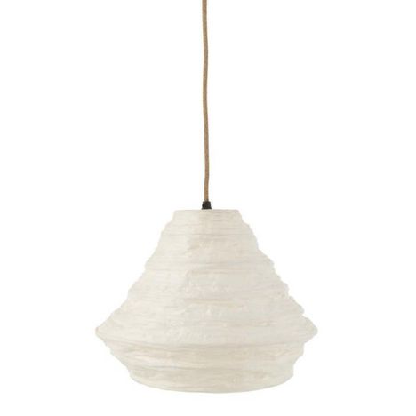 Informations Techniques : Dimensions : D. 35 x H. 28 cm Câble : L. 150 cm Matières : Raphia, Coton & Métal Spécificités : Moderne & Utile Suspension nid Ampoule non incluse À monter soi-même Douille : E27 Puissance : 40W Poids : 0,28 kg Couleur : Blanc