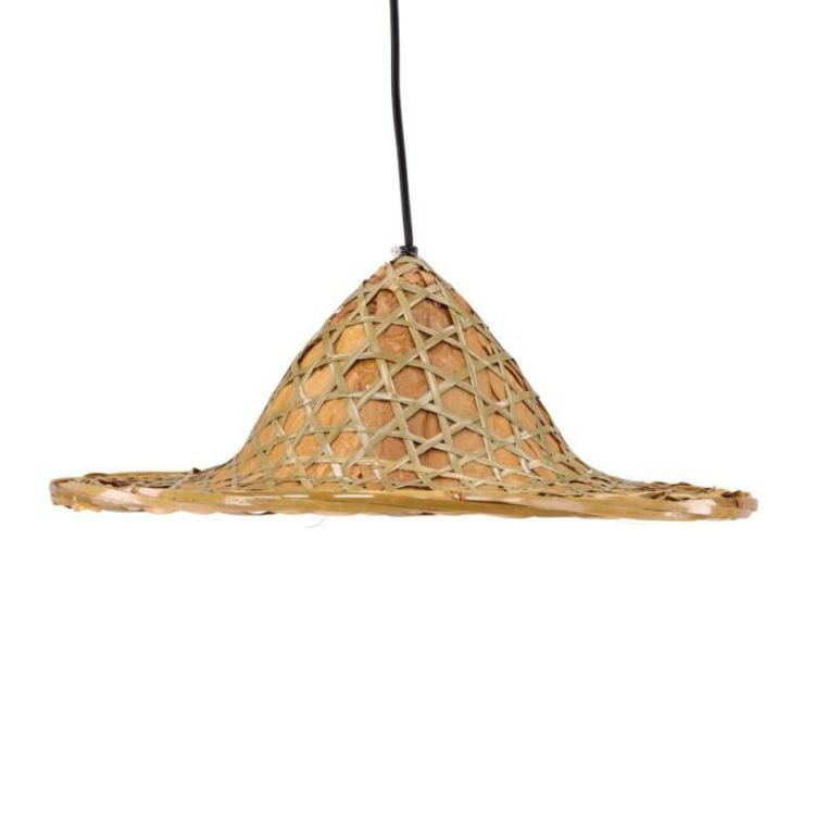 Informations Techniques : Dimensions : L. 45 x l. 45 x H. 18 cm Matières : Rotin & Métal Spécificités : Pratique & Tendance Lampe suspension déco Design chapeau Avec tressage Ampoule non incluse Douille : E27 Puissance : 25 W Poids : 0,5 kg Couleur : Naturel