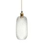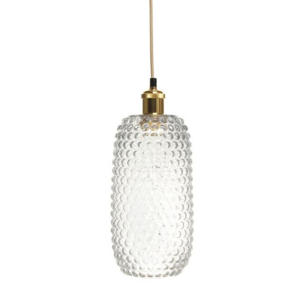 Informations Techniques : Dimensions : L. 15 x l. 15 x H. 34 cm Longueur du câble : L. 100 cm Matière : Verre Spécificités : Moderne & Tendance Lampe Suspension Déco Type de Culot : E27 Puissance : 1 x 40W Ampoule Non Incluse Fait à la Main Poids : 1450 g Couleur : Transparent