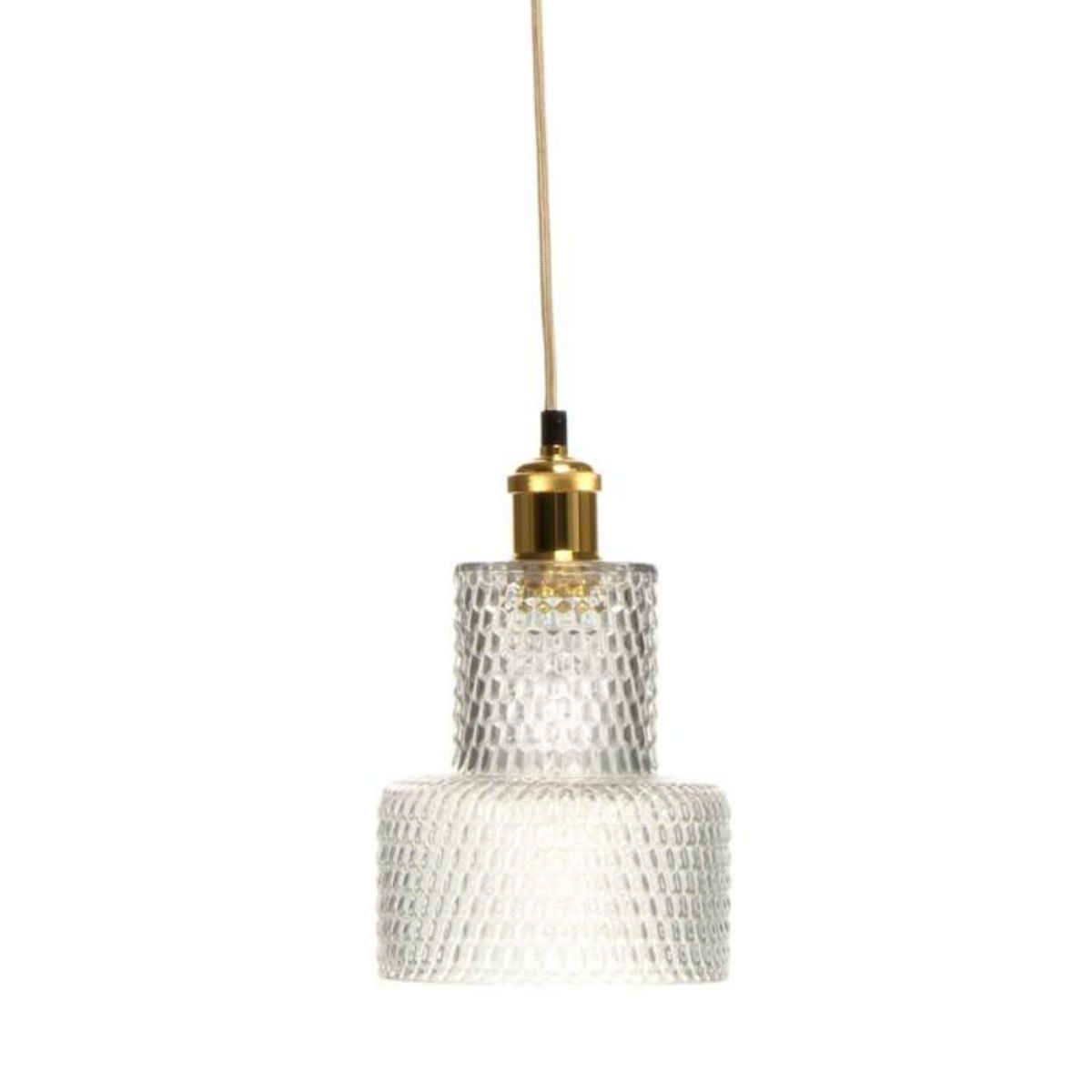 Informations Techniques : Dimensions : L. 16 x l. 16 x H. 27 cm Longueur du câble : L. 100 cm Matière : Verre Spécificités : Moderne & Tendance Lampe Suspension Design Type de Culot : E27 Puissance : 1 x 40W Ampoule Non Incluse Fait Main Poids : 1100 g Couleur : Transparent