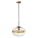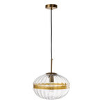 Informations Techniques : Dimensions : L. 30 x l. 30 x H. 30 cm Matières : Verre & Métal Spécificités : Élégante & Moderne Suspension design Ampoule non incluse Douille : E27 Puissance : 40W Poids : 1,6 kg Couleur : Transparent & Or