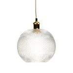 Informations Techniques : Dimensions : L. 25 x l. 25 x H. 26 cm Longueur du câble : L. 100 cm Matière : Verre Spécificités : Moderne & Tendance Lampe Suspension Déco Type de Culot : E27 Puissance : 1 x 60W Ampoule Non Incluse Fait à la Main Poids : 1500 g Couleur : Transparent & Or
