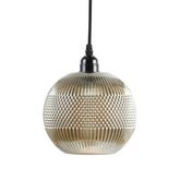 Informations Techniques : Dimensions : L. 19 x l. 19 x H. 21 cm Longueur du câble : L. 100 cm Matière : Verre Spécificités : Moderne & Tendance Lampe Suspension Design Type de Culot : E27 Puissance : 1 x 60W Ampoule Non Incluse Fait à la Main Poids : 1100 g Couleur : Or