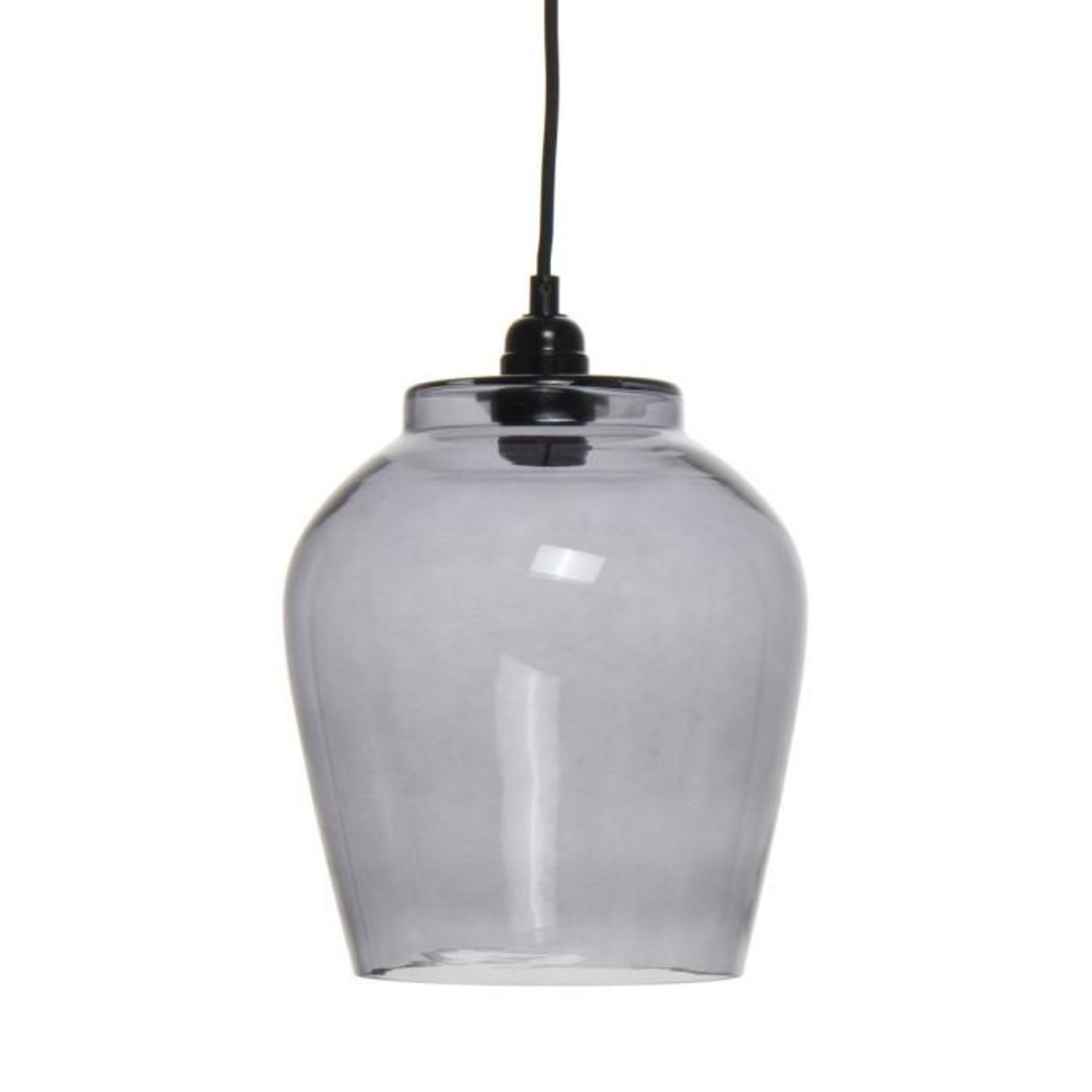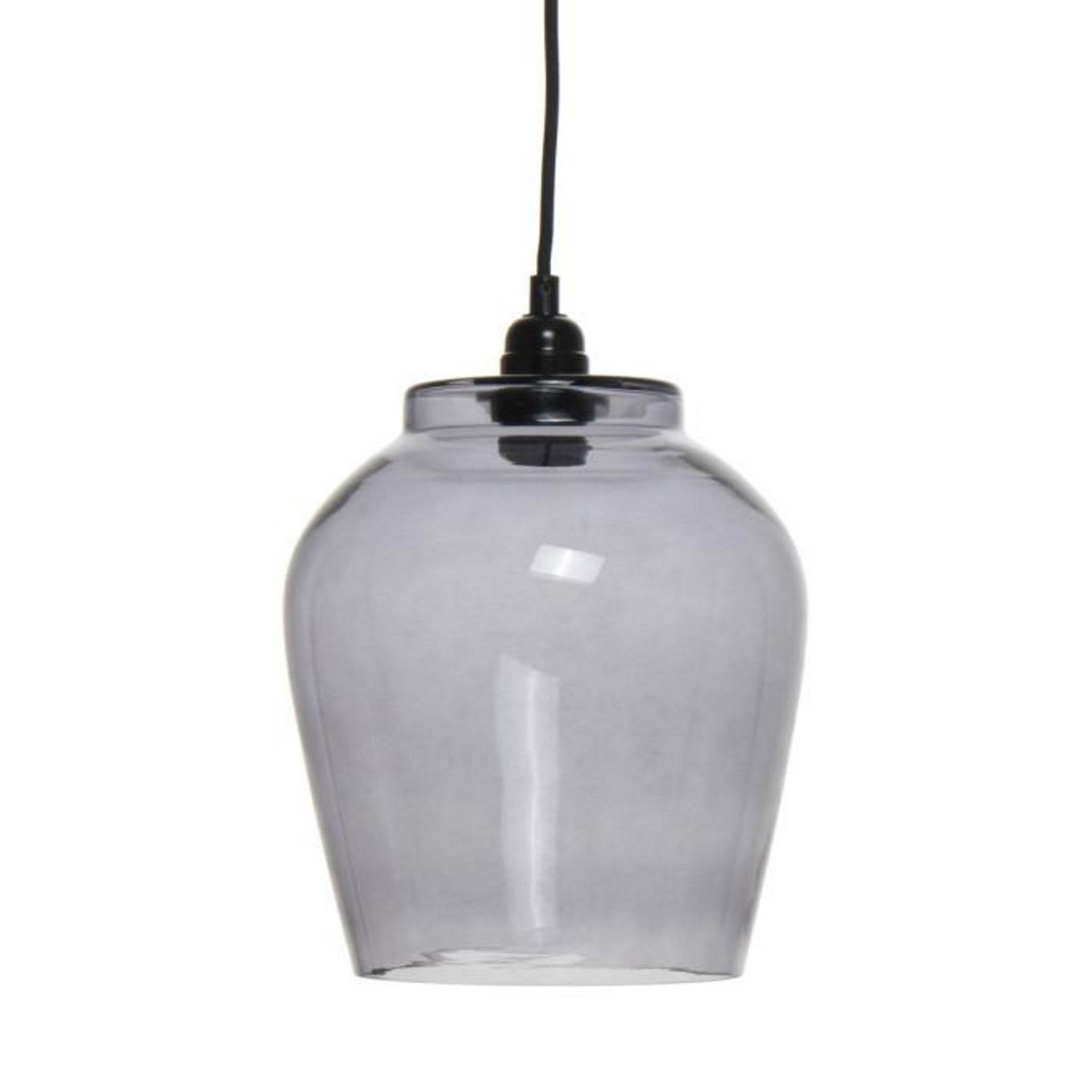 Informations Techniques : Dimensions : L. 22 x l. 22 x H. 29 cm Longueur du câble : L. 100 cm Matière : Verre Spécificités : Moderne & Tendance Lampe Suspension Design Type de Culot : E27 Puissance : 1 x 40W Ampoule Non Incluse Fait Main Poids : 1400 g Couleur : Gris