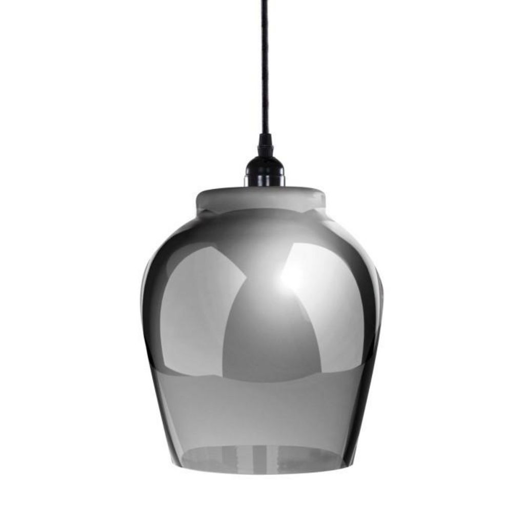 Informations Techniques : Dimensions : L. 22 x l. 22 x H. 29 cm Longueur du câble : L. 100 cm Matière : Verre Spécificités : Moderne & Tendance Lampe Suspension Design Type de Culot : E27 Puissance : 1 x 40W Ampoule Non Incluse Fait Main Poids : 1400 g Couleur : Noir & Gris