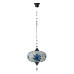 Informations Techniques : Dimensions : L. 30 x l. 30 x H. 80 cm Câble : L. 100 cm Matières : 50% Verre & 40% Métal Spécificités : Colorée & Utile Suspension design mosaïque Ampoule non incluse Douille : E27 Puissance : 60 W Poids : 2,98 kg Couleur : Bleu