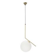 Informations Techniques : Dimensions : L. 50 x l. 30 x H. 100 cm Matières : Métal & Verre Spécificités : Épurée & Utile Suspension design Abat-jour 1 sphère en verre Ampoule non incluse Douille : E27 Puissance : 20 W Voltage : 220 V Fréquence : 50 Hz Poids : 1 kg Couleur : Blanc & Or