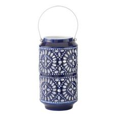 Informations Techniques : Dimensions : D. 18 x H. 33 cm Matière : 100% Métal Spécificités : Élégante & Déco Lanterne cylindrique Avec anse Design ajouré Bougie non incluse Vendue à l'unité Poids : 0,9 kg Couleur : Bleu