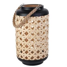 Informations Techniques : Dimensions : D. 21 x H. 38,5 cm Matière : Bois Spécificités : Pratique & Tendance Lanterne Design Forme Ronde Avec Anse Couleur : Noir & Naturel