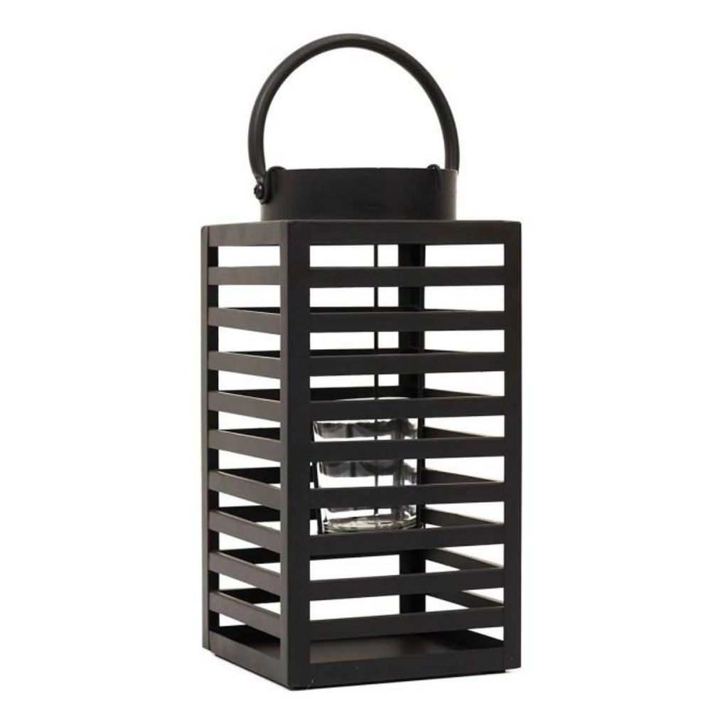 Informations Techniques : Dimensions : L. 12 x l. 12 x H. 24,5 cm Matières : Verre & Métal Spécificités : Pratique & Utile Lanterne carrée Design ajouré Avec anse Bougie non incluse Poids : 0,45 kg Couleur : Noir