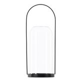 Informations Techniques : Dimensions : D. 13 x H. 35 cm Matières : Verre & Métal Spécificités : Élégante & Utile Lanterne design Facile à transporter Poids : 0,65 kg Couleur : Noir