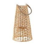 Informations Techniques : Dimensions : L. 25 x l. 25 x H. 42,5 cm Matières : 80% Rotin & 20% Verre Spécificités : Pratique & Design Lanterne déco Avec poignée de transport A poser Forme ronde Poids : 0,73 kg Couleur : Naturel