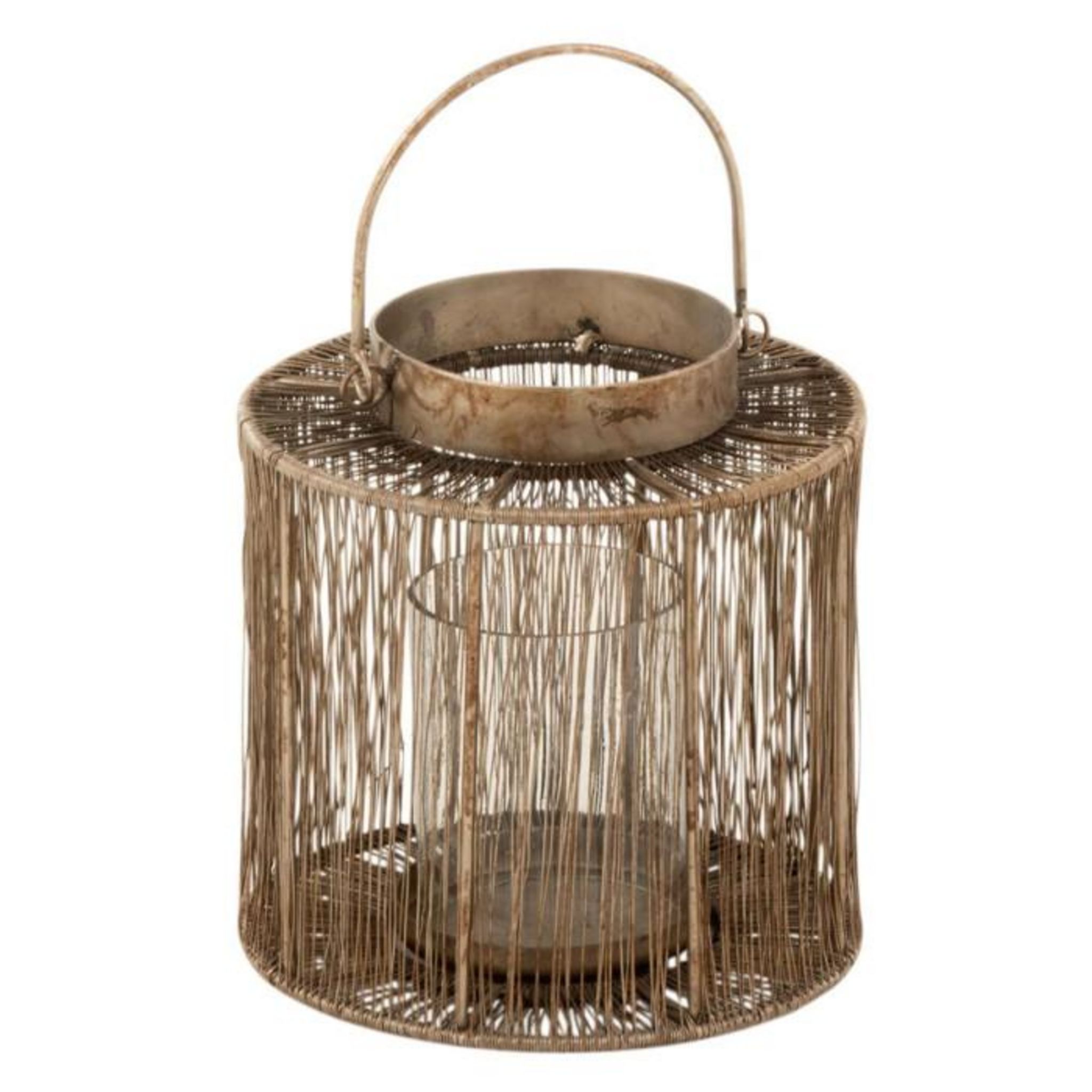 Informations Techniques : Dimensions : D. 17 x H. 27 cm Matière : Métal Spécificités : Pratique & Utile Lanterne design Forme Ronde Avec Anse Style Vintage & Rétro Poids : 0,86 kg Couleur : Bronze
