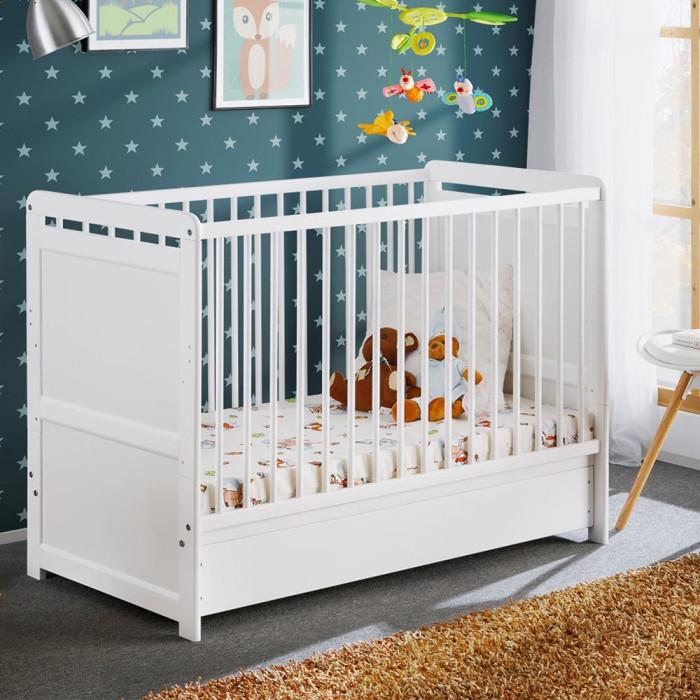 Lit bébé TYMEK Plus - bois blanc avec tiroir