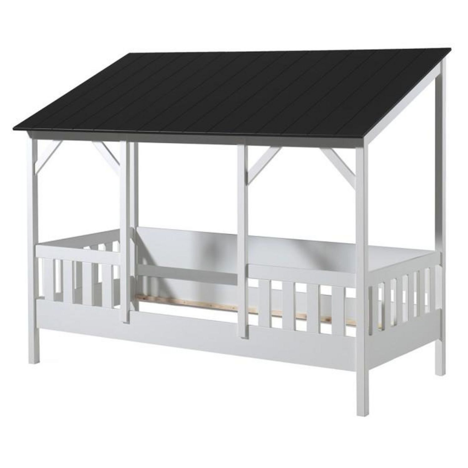 Lit Cabane Enfant en Bois Housebed III 90x200cm Blanc & Noir