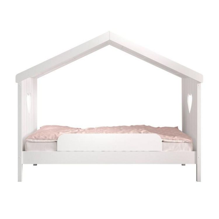 Lit Cabane Enfant Ouvert & Barrière Amori 90x200cm Blanc