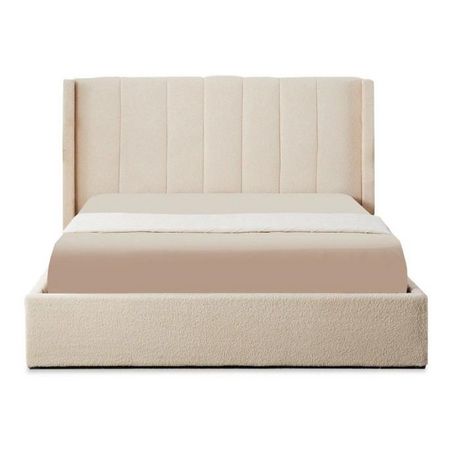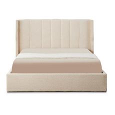 Lit Double Coffre Tissu Bouclette Somia 160x200cm Crème