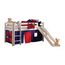 PINO Lit mezzanine avec toboggan pin massif Blanc + Rideau de lit Domino