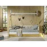 Lit Enfant, Barrière & Tiroir Tipi 90x200cm Blanc & Naturel