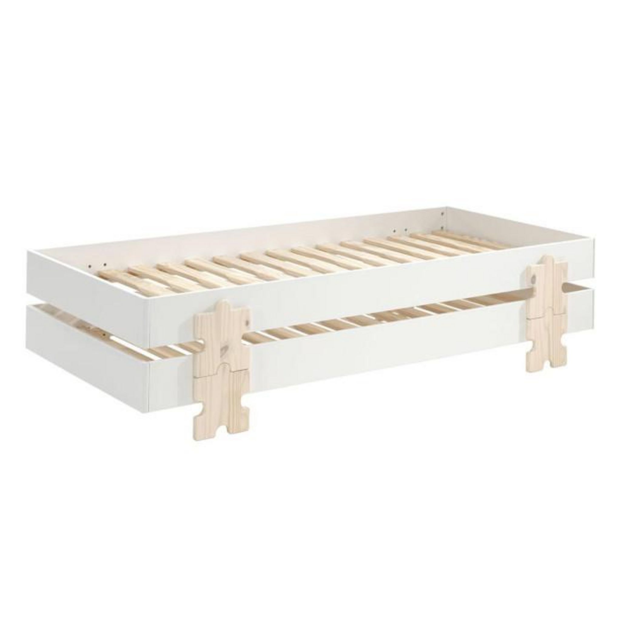 Signé par la marque Vipack, ce lot de 2 lits empilables est issu de la collection Modulo. Empilables grâce à ces petits pieds en forme de puzzle, ces lits sont très pratiques et vous permettront d'optimiser l'espace dans la chambre de votre bambin....