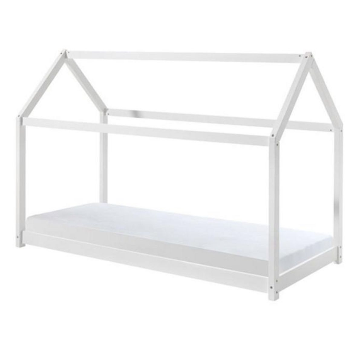 Lit Enfant & Matelas Cabane 90x200cm Blanc