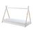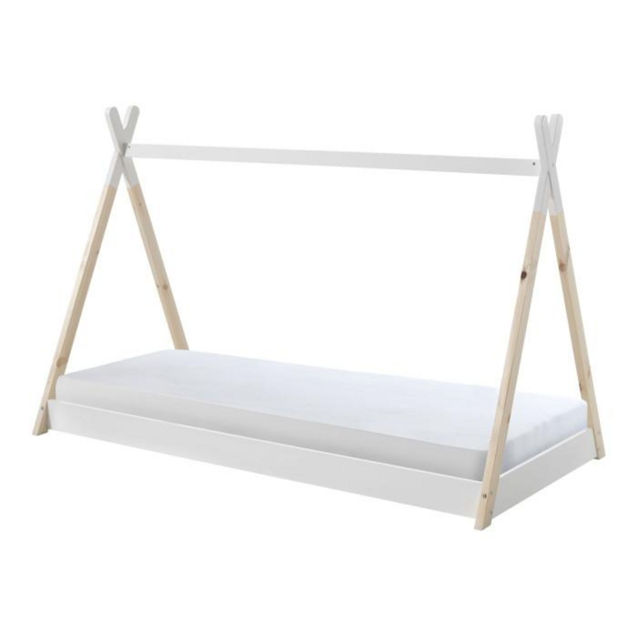 Informations Techniques : Dimensions : L. 206 x l. 106 x H. 134 cm Matière : Bois Massif (Pin) Spécificités : Tendance & Ludique Lit Tipi Enfant Sommier à Lattes & Matelas inclus A partir de 4 ans Poids Maximal Supporté : 75 kg Finition Laquée Temps de Montage estimé : 60 minutes Certification FSC