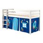 PINO Lit sureleve en pin massif avec sommier Blanc + Rideau de lit Astro
