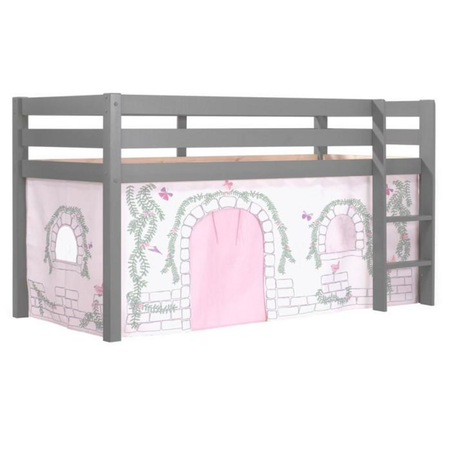 Lit Enfant Surélevé Pino 90x200cm Gris + Rideau de lit BIRDY