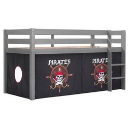 Lit Enfant Surélevé Pino 90x200cm Gris + Rideau de lit Pirate