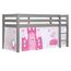 Lit Enfant Surélevé Pino 90x200cm Gris + Rideau de lit Princess