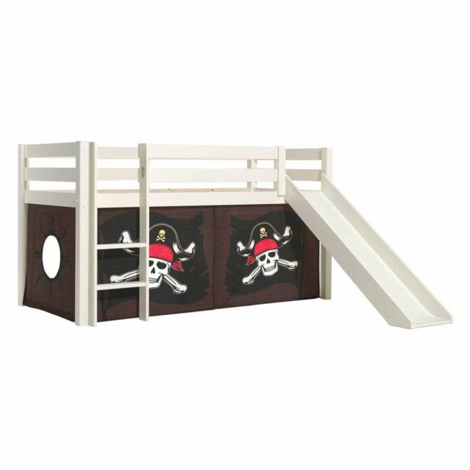 Lit Enfant Surélevé Avec Toboggan Pino Caribian Pirates 90x200cm Blanc