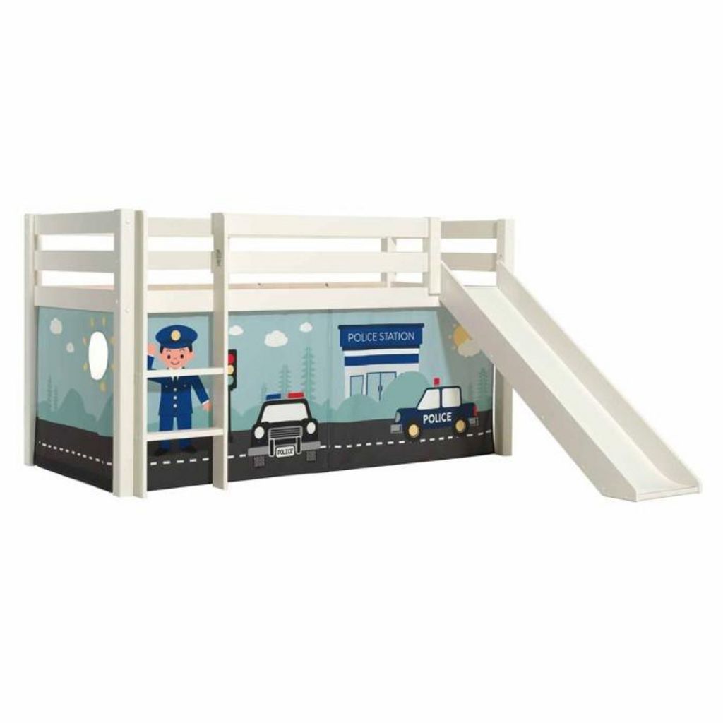 Lit Enfant Surélevé Avec Toboggan Pino Police 90x200cm Blanc