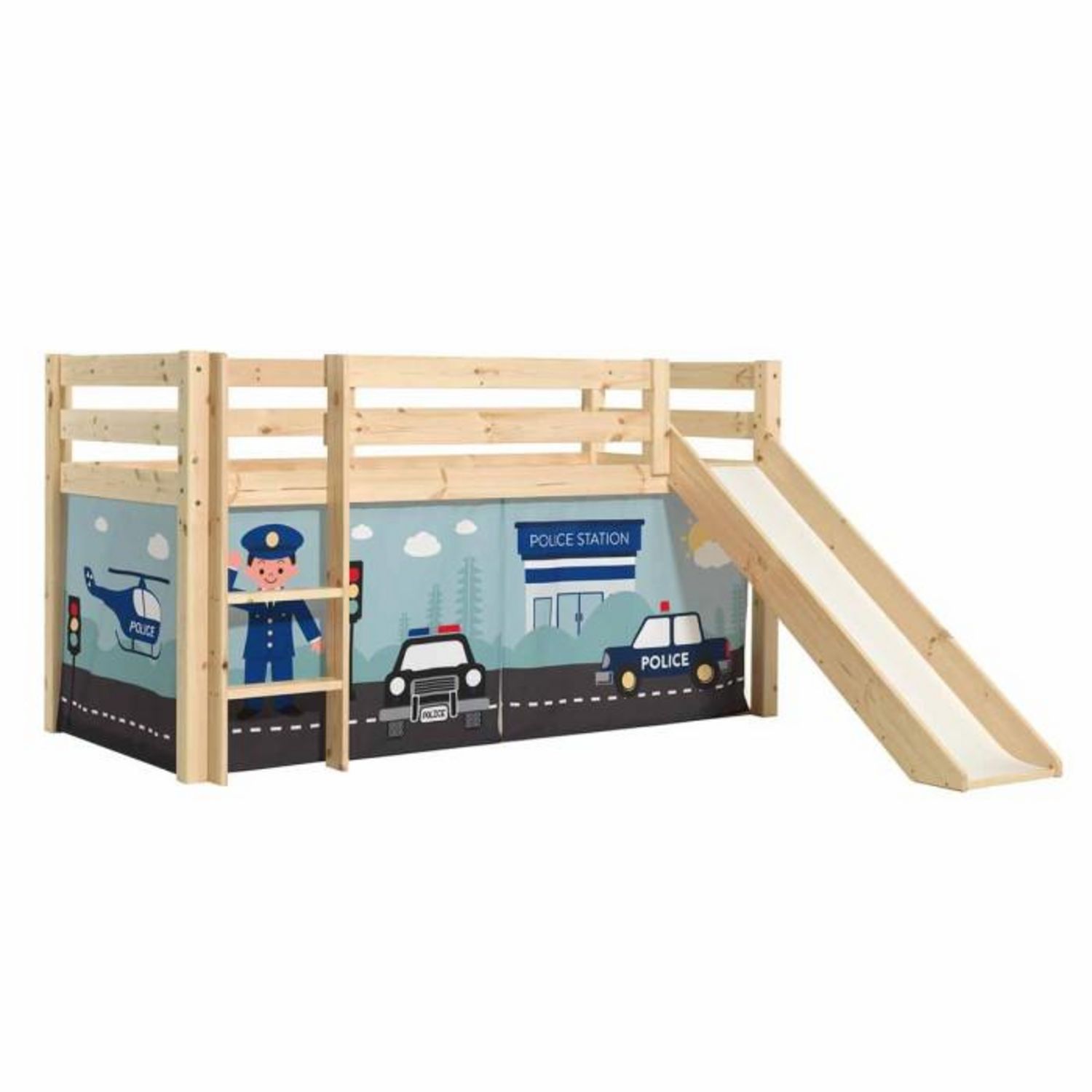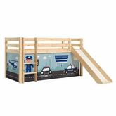 Lit Enfant Surélevé Avec Toboggan Pino Police 90x200cm Naturel