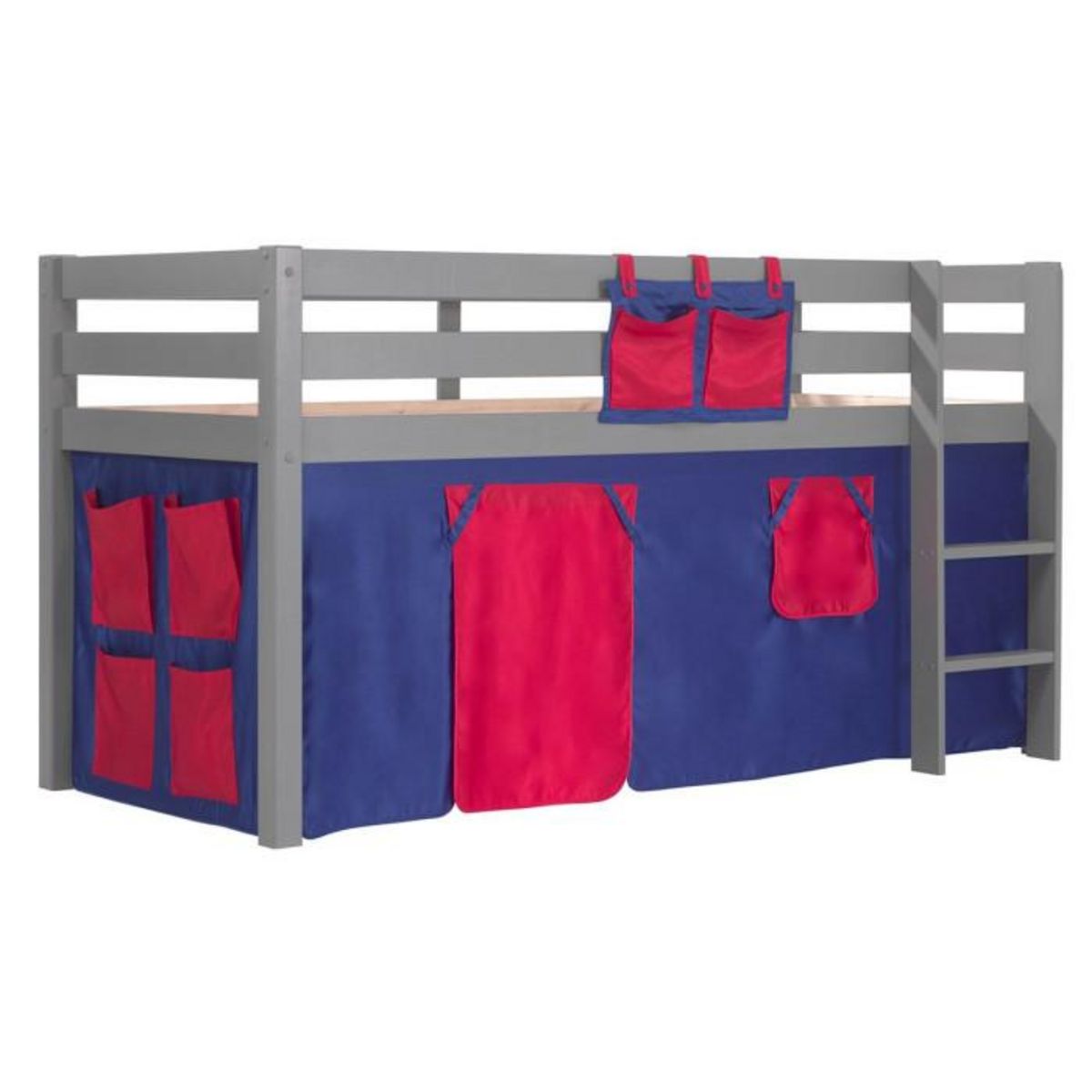 Lit Enfant Surélevé Pino 90x200cm Gris + Rideau de lit Domino