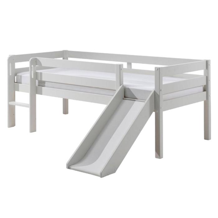 Lit Enfant Surélevé & Toboggan Pino 90x200cm Blanc
