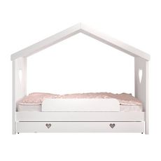 Lit Gigogne Cabane Enfant Ouvert & Barrière Amori 90x200cm Blanc