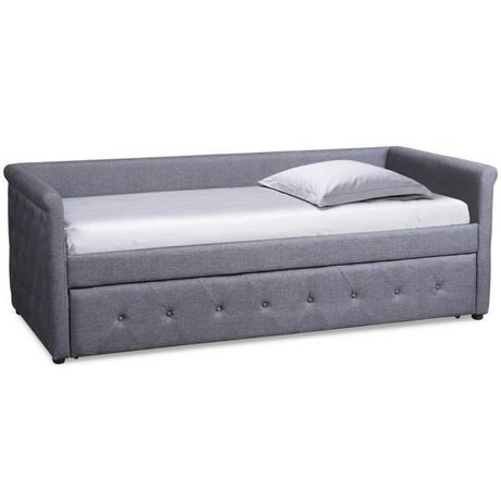 Informations Techniques : Dimensions : L. 214,5 x P. 99 x H. 73 cm Matières : Structure en bois Revêtement en tissu Spécificités : Design & Pratique Assise confortable Lit gigogne Convient pour un matelas 90x190cm À monter soi-même Nombre de colis : 2 Couleur : Gris