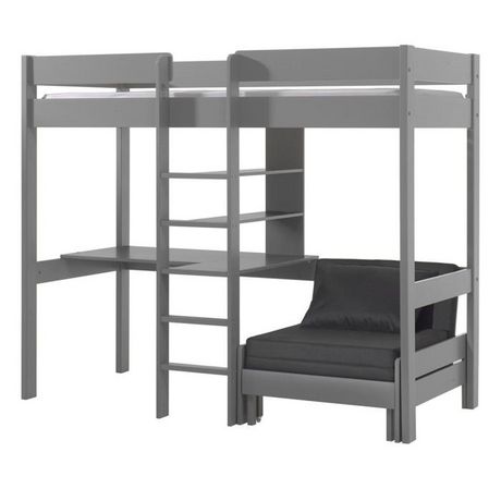 Lit Mezzanine Avec Fauteuil Pino 90x200cm Gris