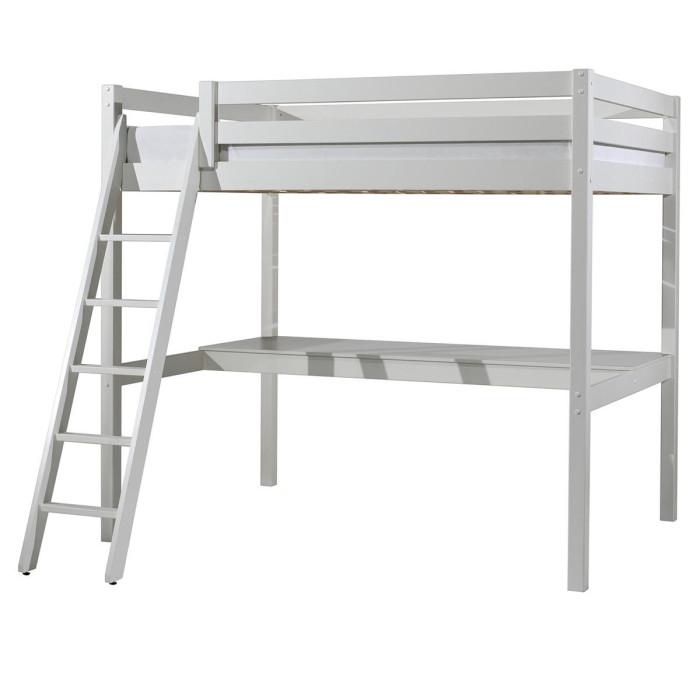 Lit Mezzanine Enfant & Plan de Travail Pino 140x200cm Blanc