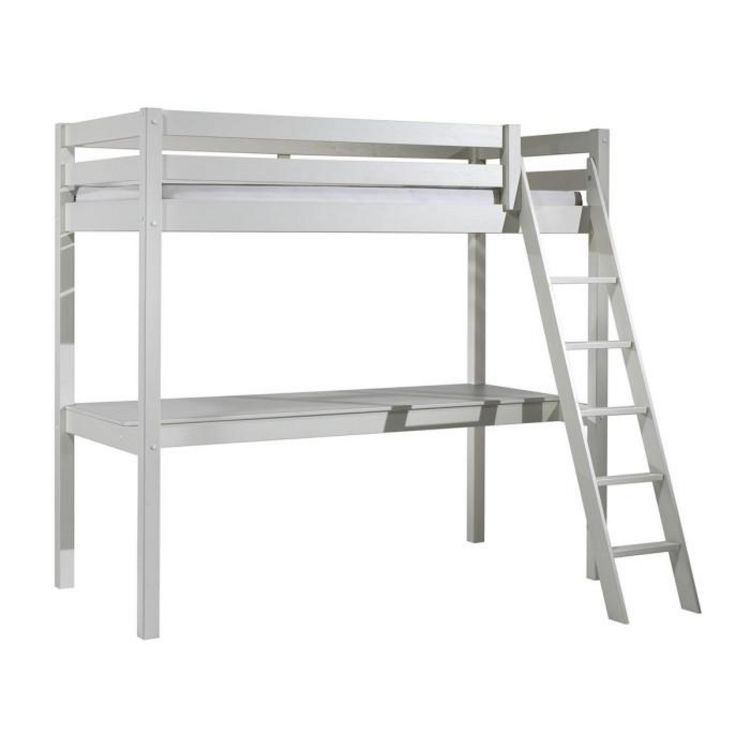 Lit Mezzanine & Plan de Travail Pino 90x200cm Blanc