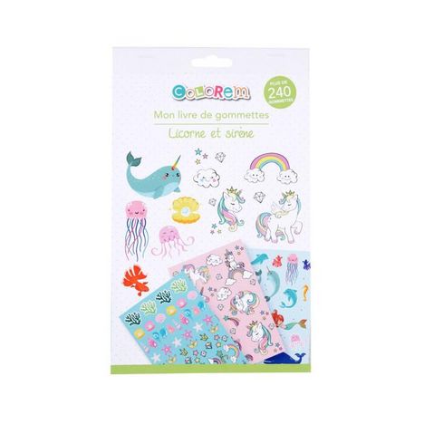 Informations Techniques : Dimensions : L. 14,8 x l. 0,2 x H. 24 cm Matière : Papier Spécificités : Utile & Pratique Mon Livre de Gommettes Forme Rectangulaire Contient + de 130 Gommettes Motif Licorne & Sirène Couleur : Vert