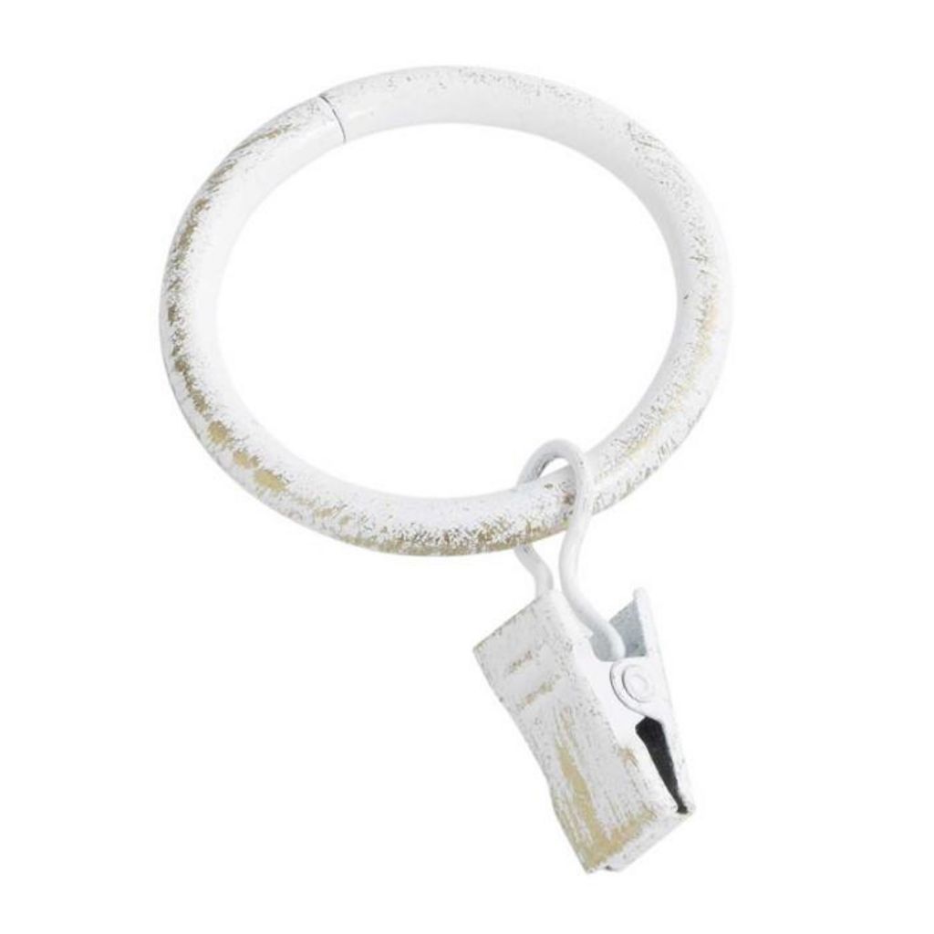 Informations Techniques : Dimensions : D. 4 x H. 0,4 cm Diamètre extérieur : D. 4 cm Produit Packagé : L. 9 x l. 5 x H. 12 cm Matière : 100% Fer Spécificités : Pratique & Utile Lot de 10 Anneaux A Pince Effet Patiné Poids : 0,141 kg Couleur : Blanc & Or