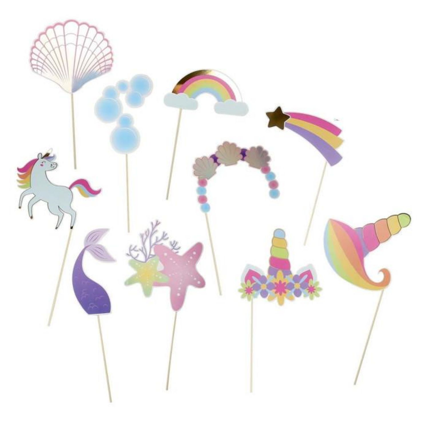 Lot de 10 Bâtons Photo Licorne & Sirène 20cm Multicolore