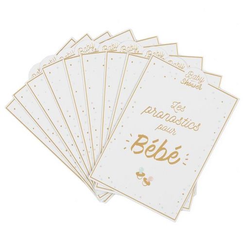 Lot de 10 Cartes de Pronostics Baby Shower 12cm Blanc